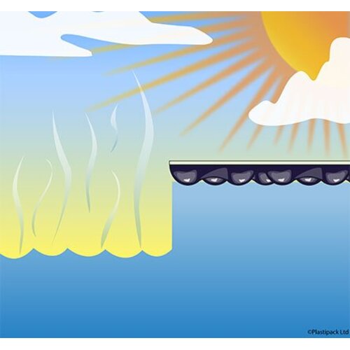 Une piscine perd 70% de sa chaleur par évaporation. Une bonne couverture de piscine réduit l'évaporation jusqu'à 98%.
