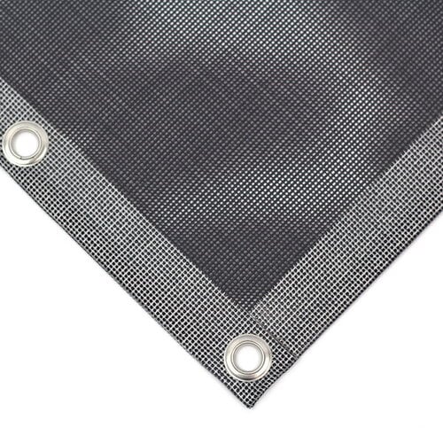 Waterdoorlatend en zeer sterk gaaszeil gemaakt van PVC/polyester gaasweefsel 600 gr/m2, geschikt voor heavy-duty toepassingen, zoals industriële toepassingen, afdekken van aanhangwagens met bouwafval of tuinafval.