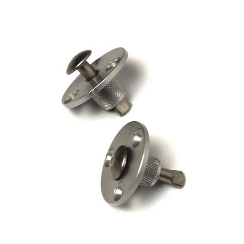 Aluminium cilinder diam. 10mm en uittrekbare inox pen met afgeplatte bovenkant diam. 14mm. Bevestiging via 3 schroeven.