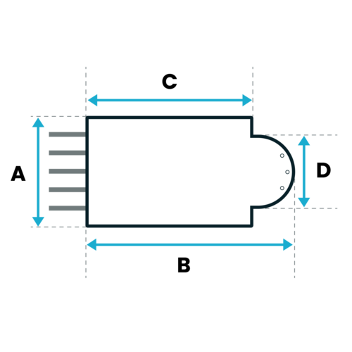 Maten B, C en D = afstand tussen wanden - 2cm speling