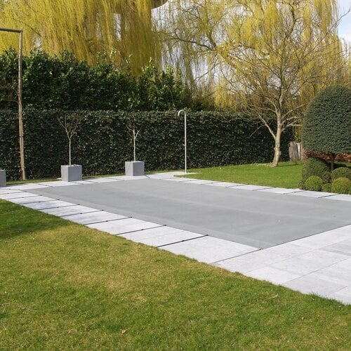 Het materiaal is overal waterdoorlatend, zodat er geen regenwater op het zeil blijft staan.