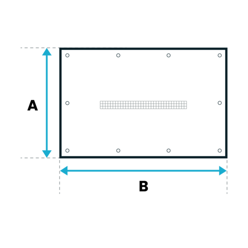Professioneel winterzeil van PVC/polyester 620 gr/m², met gaasstrook. Rondom gezoomd en RVS zeilringen (voorkeur om de 50cm).